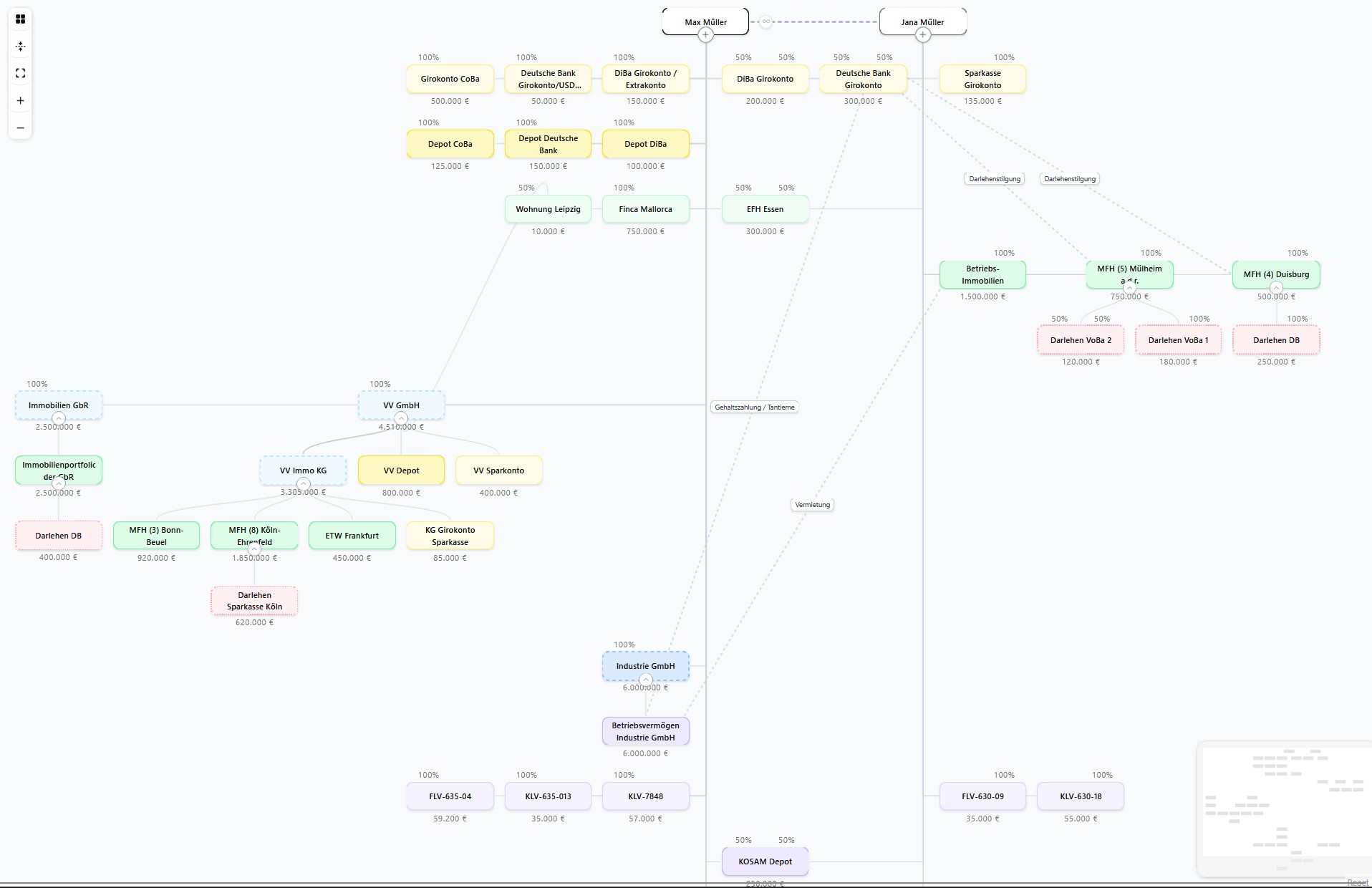 Unsere Software unterstützt Beratende dabei, komplexe Kunden-, Vermögens- und Unternehmerkonstellationen systematisch zu erfassen, zu visualisieren, zu analysieren und in konkrete Handlungslogiken zu überführen. So entsteht eine moderne Beratungsinfrastruktur, die fachliche Tiefe, Transparenz und Vertriebswirksamkeit intelligent miteinander verbindet.